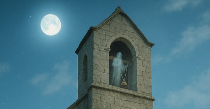 Před desítkami let, když oheň zachvátil jeho trámy, zůstala uvnitř uvězněna skupina obyvatel města. Nikdo nevěděl, jak oheň vznikl – jen to, že se rychle šířil. Někteří tvrdili, že té noci viděli v věži postavu, stín, který tahal za provaz, zatímco plameny pohltily lavice.