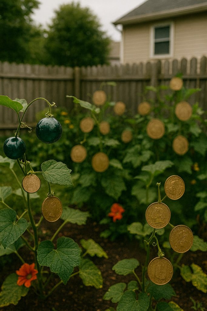 Zpočátku to bylo nepatrné. Místo zelených okurek se na révě leskly oválné tvary – hladké, skleněné kuličky, které se třpytily na slunci. Když jsme se naklonili přes její plot, mysleli jsme si, že je to možná žert. Možná plastové ozdoby.