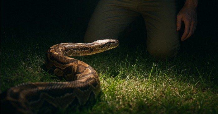 Ale jedné noci jsem zaslechl podivný šelest na zadním dvorku. Nejprve jsem si myslel, že je to kočka. Vyšel jsem s baterkou a ztuhl jsem. Po trávě se kroutila obrovská hadice. Okamžitě jsem pochopil, že je to sousedova krajta.