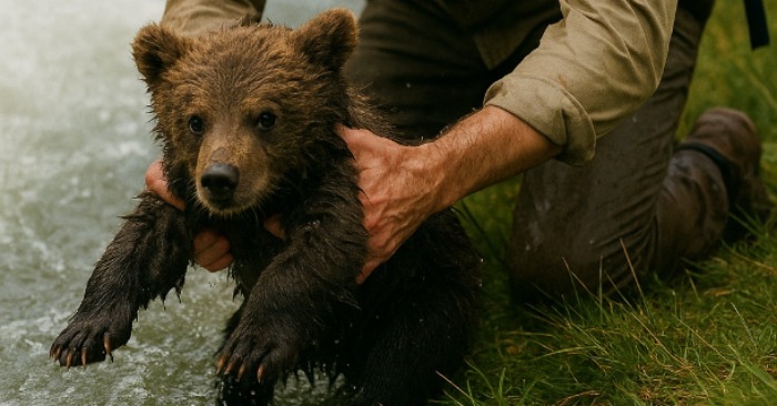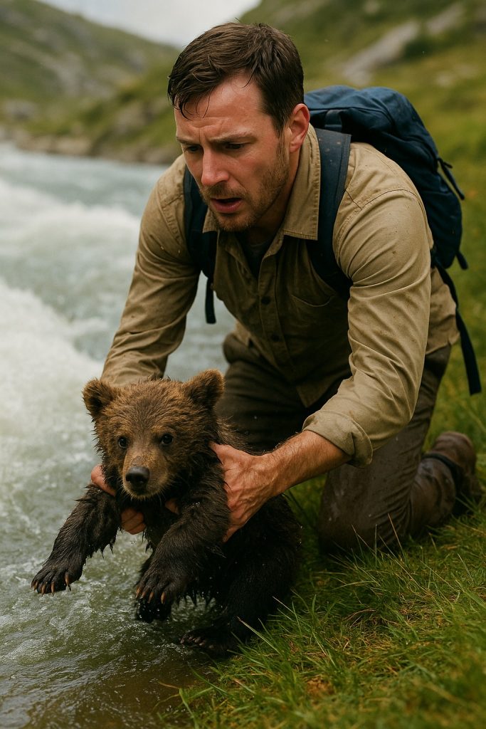 Třetí den výletu jsem došel k řece. Voda tekla rychle, byla ledová a její šumění naplňovalo celé okolí. Usadil jsem se na kameni, vytáhl termosku s kávou a díval se na hladinu. A najednou jsem v proudu zahlédl něco tmavého. Nejprve jsem si myslel, že je to kláda. Ale za vteřinu mi srdce spadlo do kalhot: bylo to malé medvídě.
