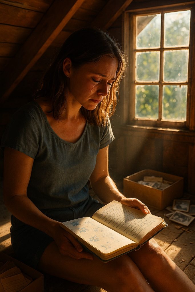 Světlo zjemnilo. Slunce klouzalo po podlaze, dotýkalo se krabic a starých dopisů. Anna sešit zavřela, přitiskla ho k hrudi a v nitru se jí rozlil klid. Ne bolest — jen ticho.