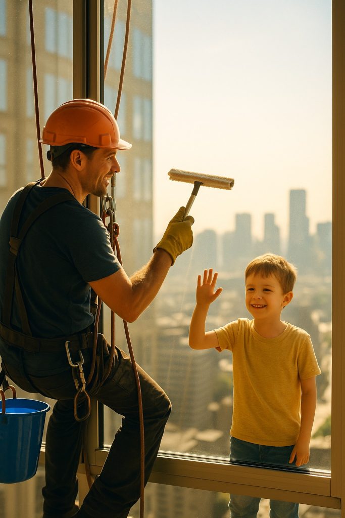 Jednoho dne, když čistil okna na osmdesátém patře nového obchodního centra, se za sklem objevil chlapec.