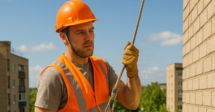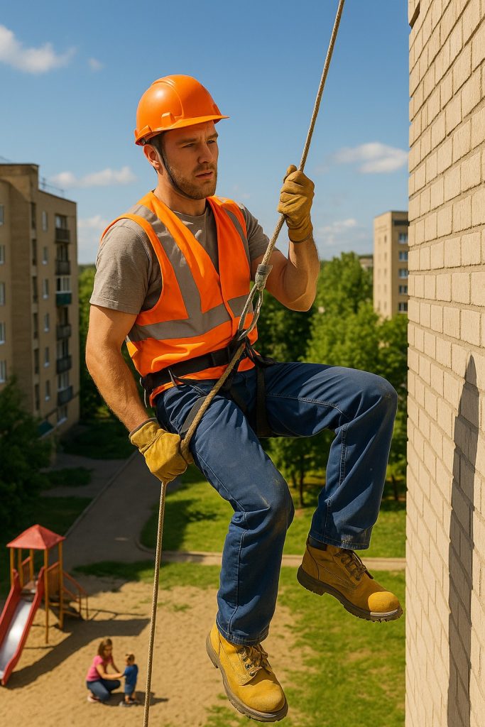 Na střeše devítipatrového domu dokončovali tři dělníci pokládku krytiny — Mark Ivanson, Robert Klein a George Meyer.
