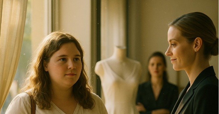 Na figuríně visely šaty — bílé, lehké, jako by byly utkány ze světla.