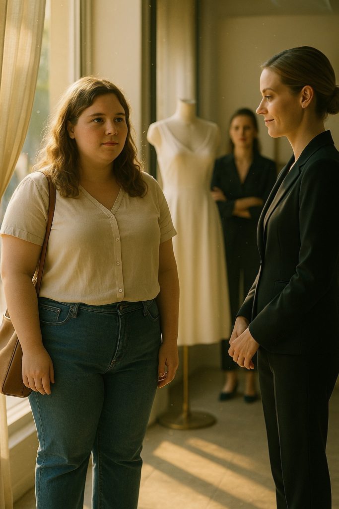 Druhá prodavačka v rohu se pobaveně pousmála — zakryla si ústa, jako by zakašlala, ale v očích jí jiskřil smích.