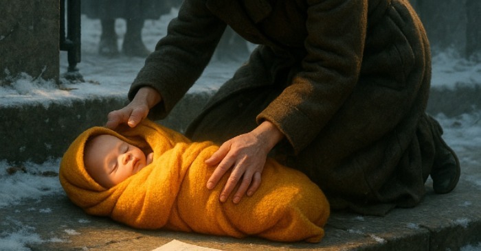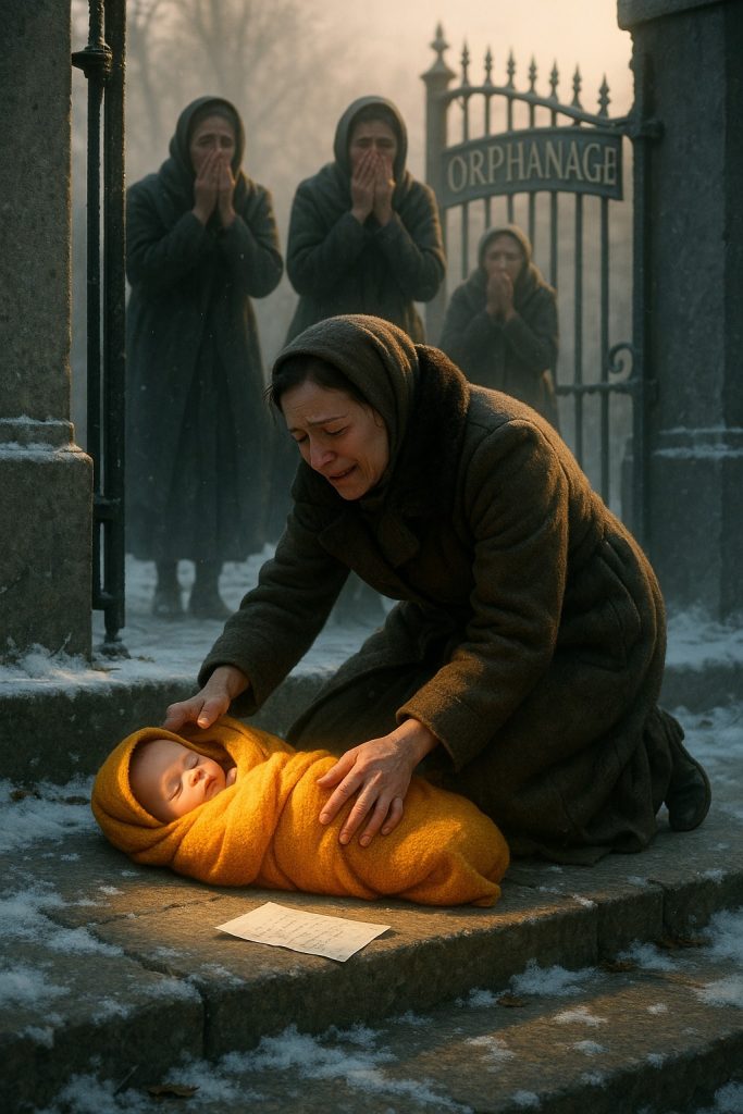 Chladné ráno zahalovalo dětský domov do šedé mlhy. Službu konající vychovatelka vyšla na dvůr, aby zkontrolovala bránu, a najednou si přímo u vchodu všimla malého uzlíčku. Srdce jí spadlo dolů — v dece leželo nemluvně.