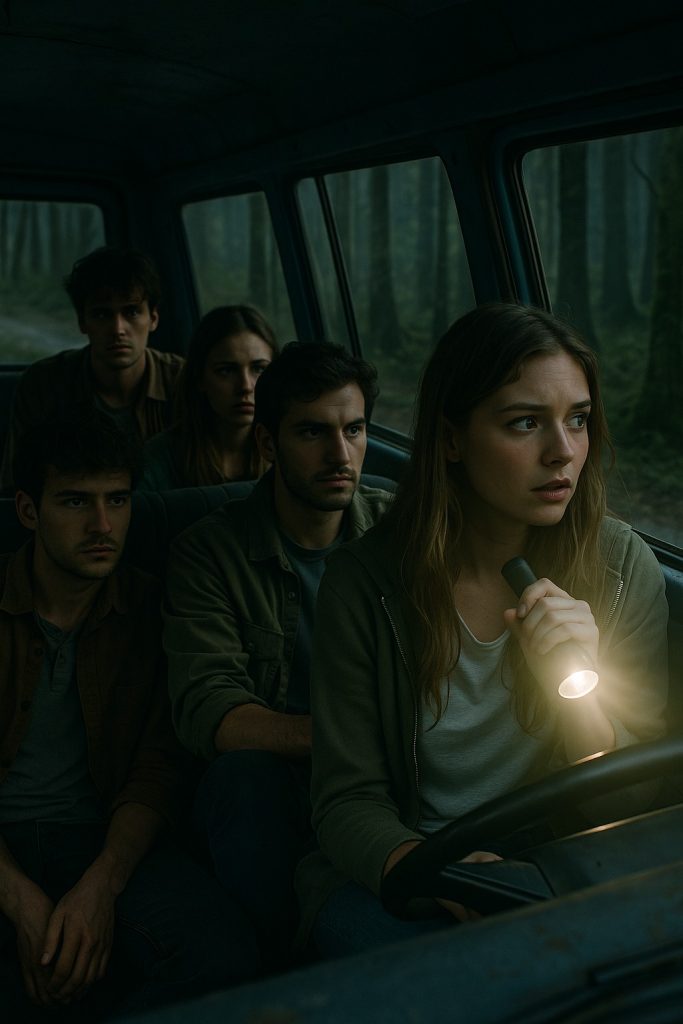 Ráno se motor dodávky sám od sebe rozběhl — i když jim starý muž tvrdil, že je „mrtvý“. Vyrazili dál… a po pár hodinách se ocitli u vjezdu do svého města. Celá cesta se ukázala být kruhem.