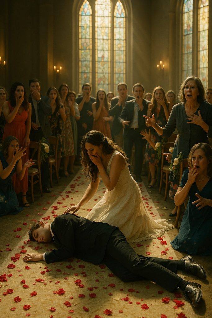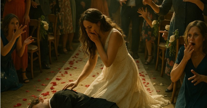Ale během prvního tance se stalo něco neočekávaného. Ženich se náhle zastavil, jeho nohy se podlomily a zhroutil se přímo na zem. Hudba ztichla a sálem se rozlehly výkřiky. Nevěsta si klekla k němu a prosila ho, aby otevřel oči. Hosté spěchali k telefonu a volali záchranku.