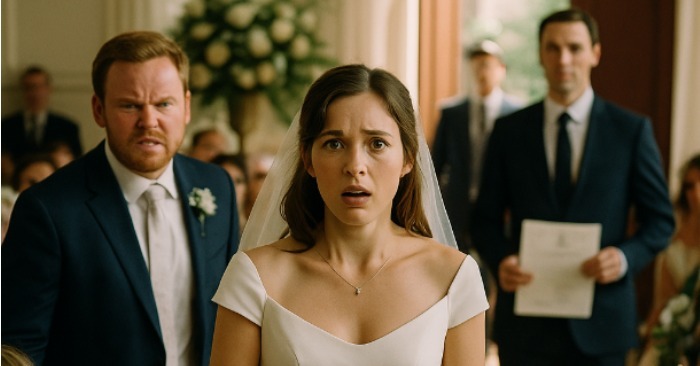 Sál zalapal po dechu. Ženich u oltáře zbledl a zakryl si obličej. Cizinec s dokumenty sklopil zrak k podlaze. Hosté byli v šoku — nikdo nečekal taková slova.