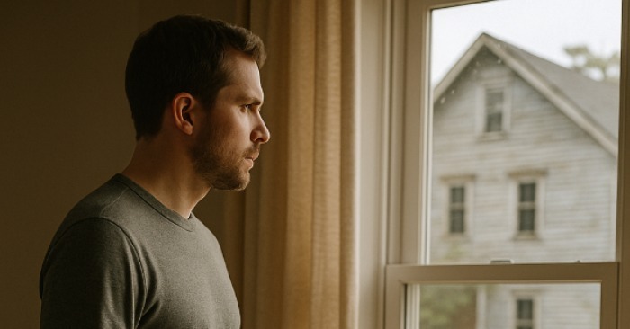 Jednoho dne se James rozhodl zjistit, co tam vidí. Přišel k oknu, podíval se ven — nic. Jen starý dům naproti, dávno opuštěný, s okny přibitými prkny a oprýskanou omítkou.