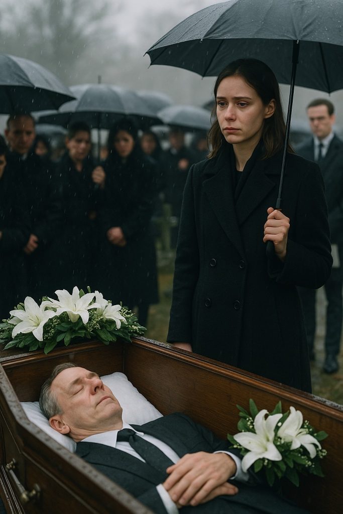 Neplakala — jen hleděla na vlhkou zem, na věnce s chladnými nápisy.