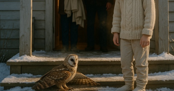 Otec zaslechl tlumenou ránu o zábradlí a vyšel bosý na verandu. Na prknech ležela sova — velká, s peřím barvy popela a jantarovýma očima, které jako by viděly všechno. Jedno křídlo měla zlomené, pero trčelo pod zvláštním úhlem. Těžce dýchala, ale ani se nepokusila odletět.