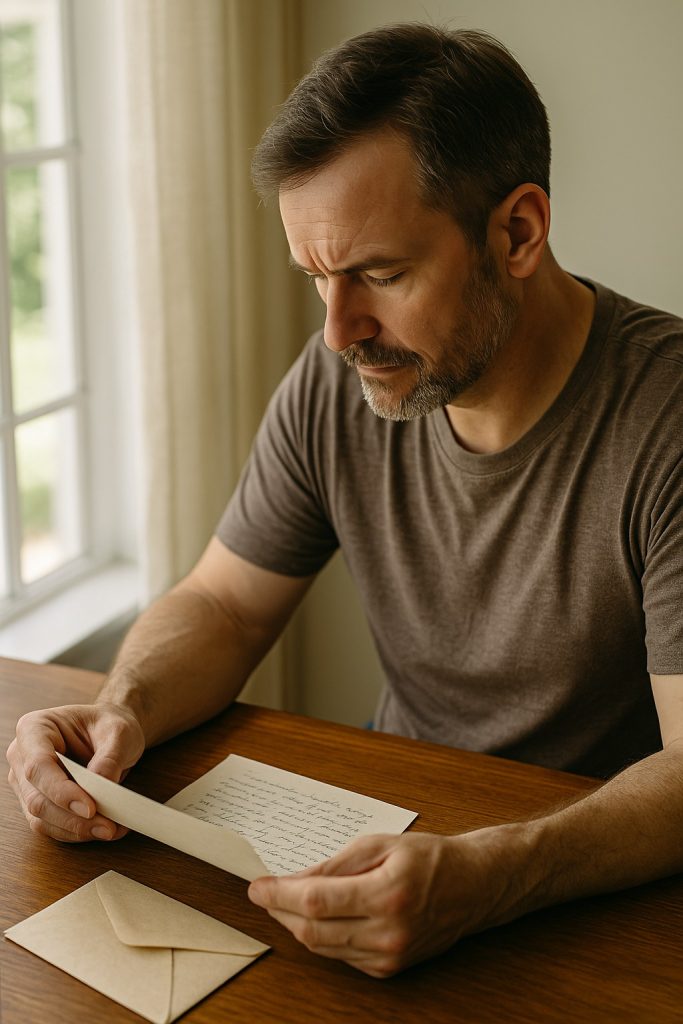 Dlouho seděl a díval se na ta slova, neschopný obálku otevřít. Teprve večer, když slunce zapadalo a pokoj se ponořil do měkkého světla, opatrně papír roztrhl.