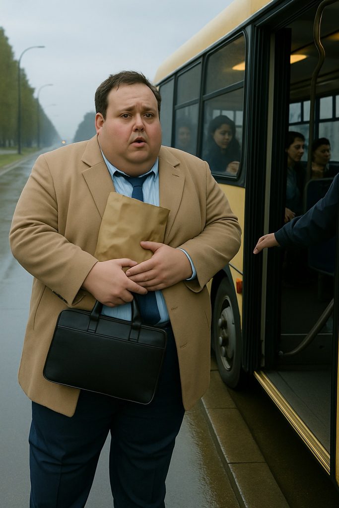 Martin stál u zastávky a držel v rukou kufřík a papírový sáček se sendviči. Košile byla napnutá, límeček ho škrtil, podpaží měl vlhké – všechno jako vždy.