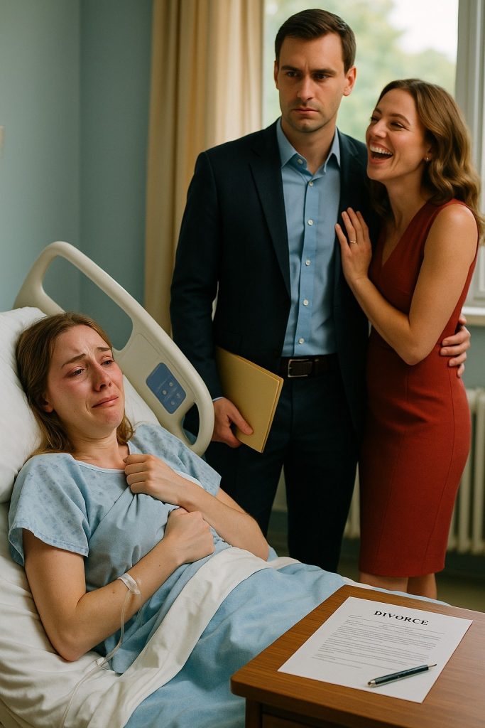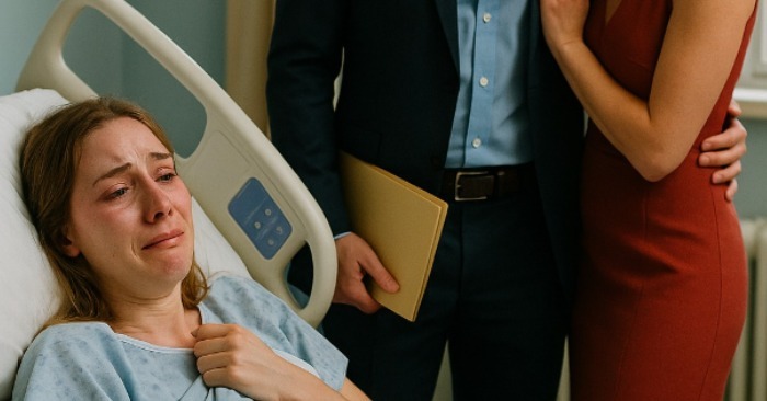 Když se dveře otevřely, myslela si, že dorazil lékař. Ale stál tam – její manžel. Jeho tvář byla chladná, bez výrazu, v ruce složka papírů.