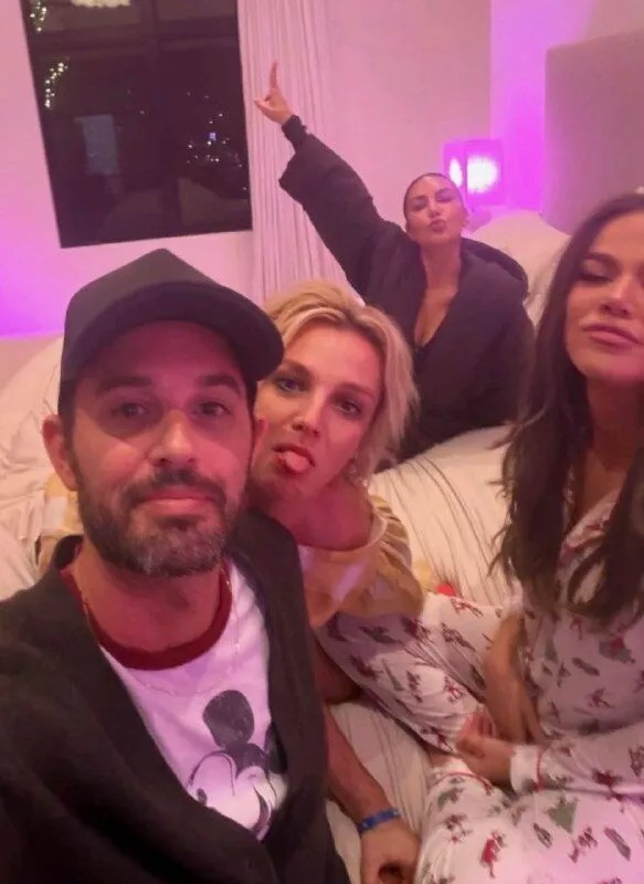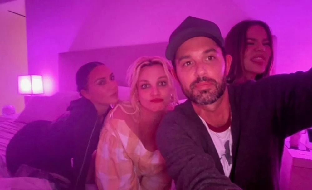Pětačtyřicetiletá Kim zveřejnila několik domácích fotografií sebe, Britney a zpěvaččina manažera Cade Hudsona, jak sedí na velké posteli v pyžamu. Tyto fotografie byly pro Spears nečekaným, ale vítaným návratem po jejím krátkém zmizení ze sociálních médií.