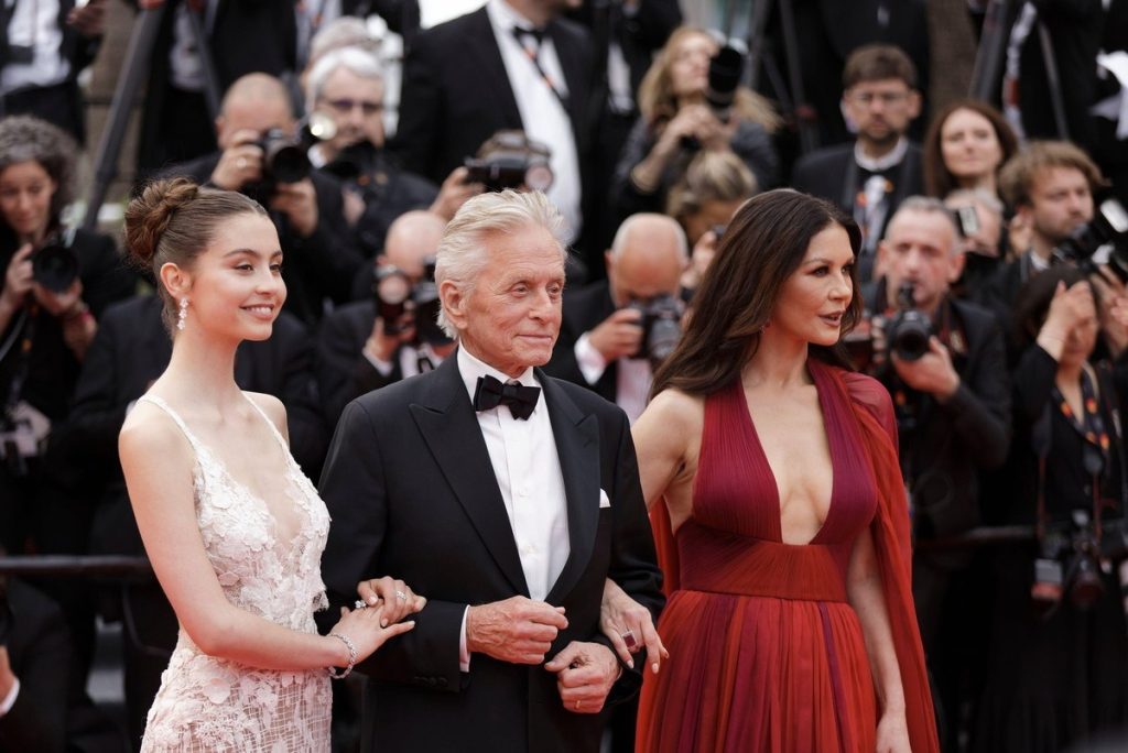 Catherine oslnila v černém topu a pruhovaných kalhotách, které doplnila sakem na míru. Michael zvolil pohodlný ležérní vzhled – bílou mikinu, tmavé tištěné vesty a černé kalhoty. Dylan byl mezitím skutečnou hvězdou show: stylová manšestrová bunda, bílá košile a džíny zdůrazňovaly jeho sebevědomí a zděděné hollywoodské kouzlo.