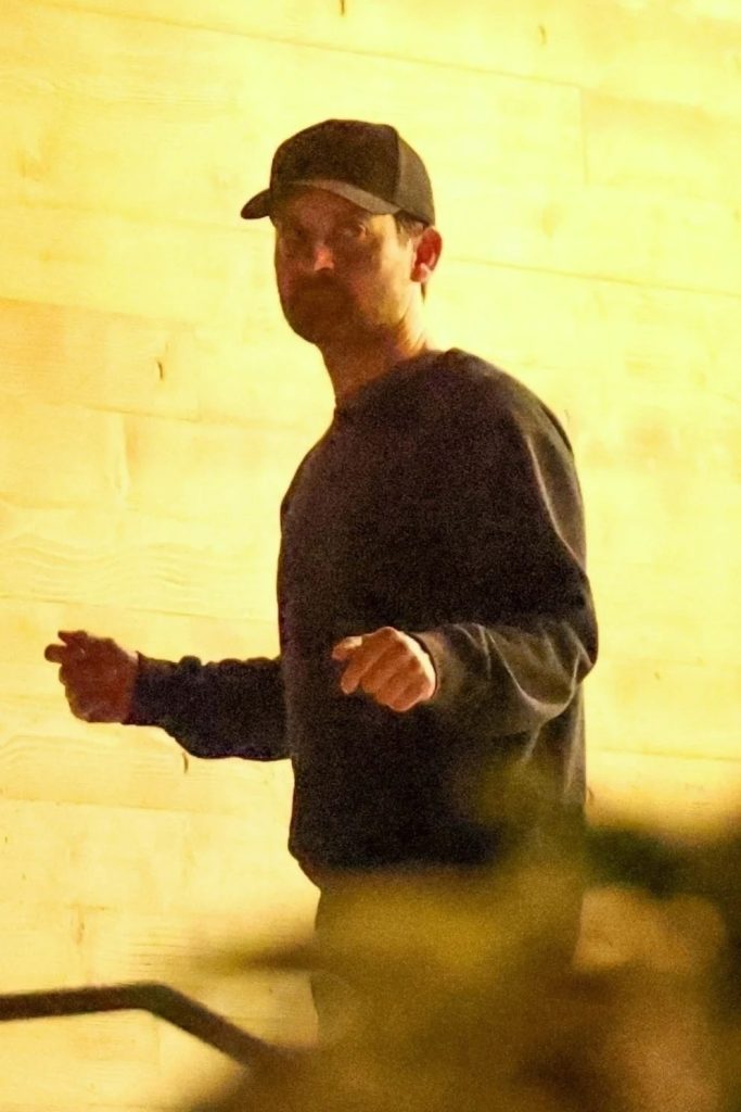 Tobey Maguire také zvolil klidný, decentní outfit. Dorazil v černé mikině, ideální pro neformální setkání. Na hlavě měl svou obvyklou čepici. Tento vzhled se často objevuje v jeho každodenním životě. Vypadal přirozeně a uvolněně.