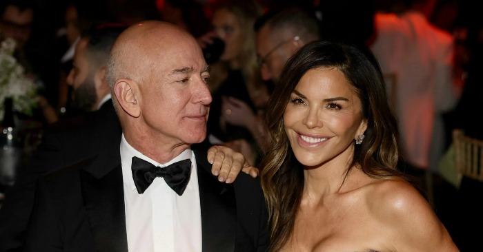 Sanchez Bezos doplnila svůj vzhled svými charakteristickými velkými diamantovými náušnicemi a tmavými slunečními brýlemi. Vlasy měla stažené do úhledného vysokého culíku s jemnými vlnami, které jinak formálnímu outfitu dodaly jemný nádech.