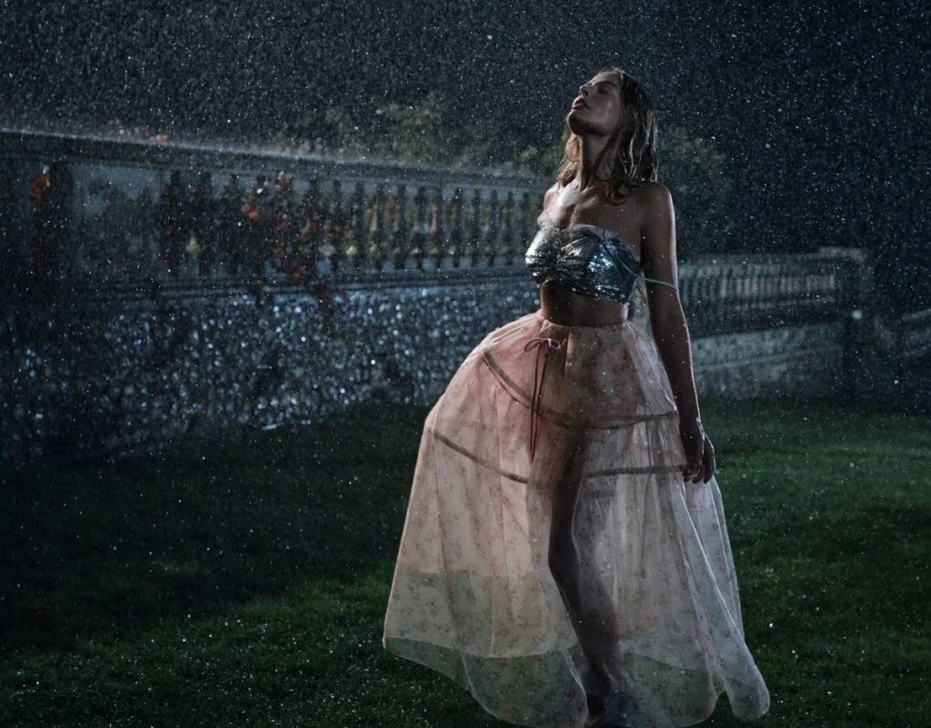 U následujících fotografií Margot zvýšila laťku: vyšla do deště v jednoduché podprsence a poloprůsvitné květinové sukni od Simone Rocha. Fanoušci poznamenali, že Robbie na těchto fotografiích jako by žila – tak přirozeně a zároveň odvážně vypadá ve vlhkém, chladném počasí.