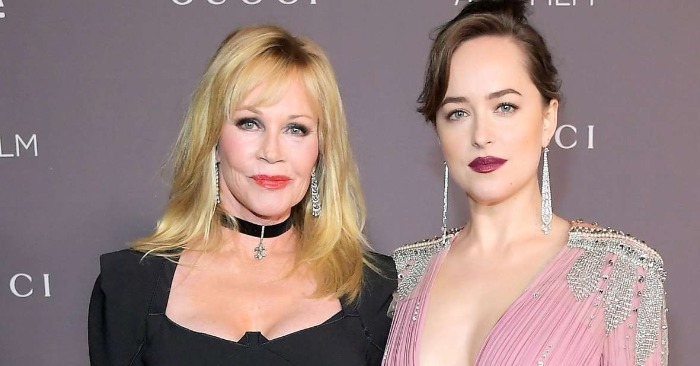 Dakotu doprovázela její matka Melanie Griffith, která vypadala stejně elegantně. Osmašedesátiletá herečka si upravila blond vlasy do úhledného drdolu a zvolila jemný růžový make-up. Měla na sobě krémový kalhotový kostýmek v kombinaci s béžovými podpatky, což vytvářelo rafinovaný a nadčasový vzhled.