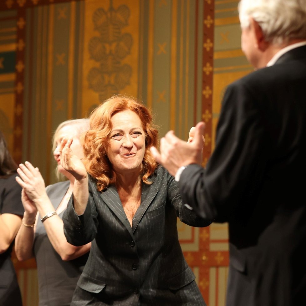Hudební část večera měla sílu malého koncertu. Oslavenci zazpívali Marek Ztracený, Matěj Ruppert, Pavel Žalman Lohonka, Petr Janda i Bára Basiková. A nakonec se mikrofonu chopil sám Donutil. Své pěvecké schopnosti potvrdil stejně suverénně jako v Baladě pro banditu nebo na loňských koncertech s Eva Urbanová. „Jsou jen dva herci, kteří by se mohli z fleku živit zpěvem. Mirek Donutil a Viktor Preiss,“ složil mu poklonu Karel Vágner.