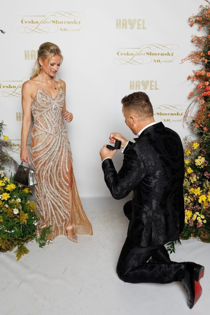 Dáma, evidentně překvapená, ale neuvěřitelně šťastná, okamžitě souhlasila a prsten s diamanty našel své místo na jejím prsteníčku. A následoval dlouhý polibek, který osvědčil, že jejich láska je silná a skutečná. Tento romantický okamžik zachytil oficiální fotograf Česko-Slovenského plesu, takže romantiku, která se odehrála před očima mnoha lidí, můžeme vidět i v fotkách z této nezapomenutelné chvíle.