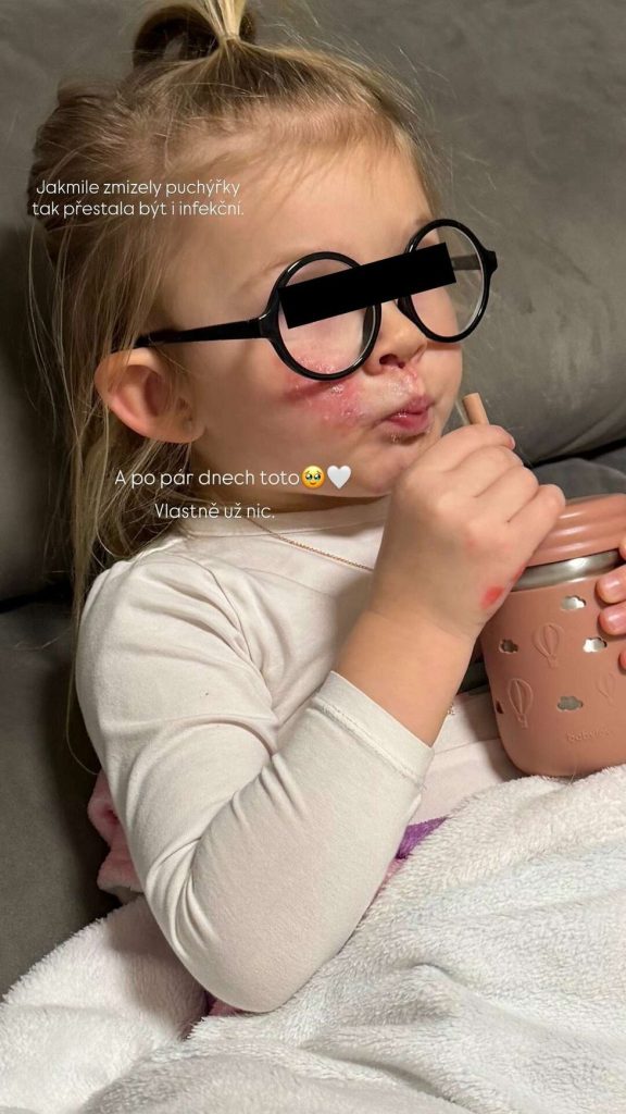 Jenže vysoce nakažlivé bakteriální onemocnění kůže, které postihuje hlavně malé děti, nabralo rychlý spád. Puchýřky přibývaly, horečky nepolevovaly. Následující den už bylo jasné, že situace je vážnější. Malá Mia skončila na kožním oddělení v nemocnici, kde jí odebrali vzorky a nasadili antibiotika.