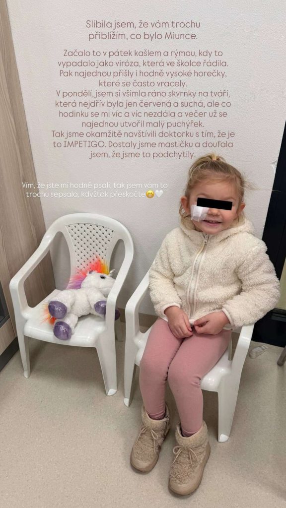 Výsledky testů přinesly zásadní zjištění. Nešlo jen o bakteriální infekci, jak bývá u impetiga obvyklé, ale i o virovou složku. Právě proto antibiotika nezabírala. Léčba se musela změnit. Mia dostala jiné léky a navštívila i oční oddělení kvůli zánětu spojivek.