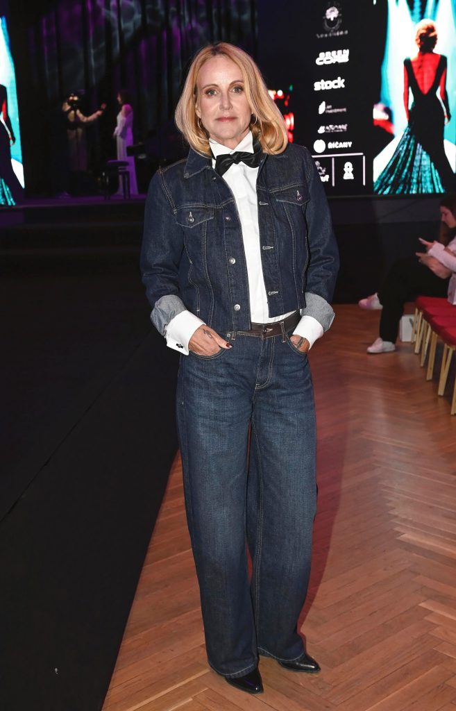 Na módní show Martiny Pipkové Loudové dorazila v džínovém kompletu, který doplnila košilí s manžetovými knoflíčky a motýlkem u krku. Právě detaily zaujaly na první pohled. „Manžetové knoflíčky jsem si půjčila od manžela,“ svěřila se s úsměvem. Outfit podtrhl její štíhlou siluetu, která je podle jejích slov výsledkem snahy o pravidelný pohyb.