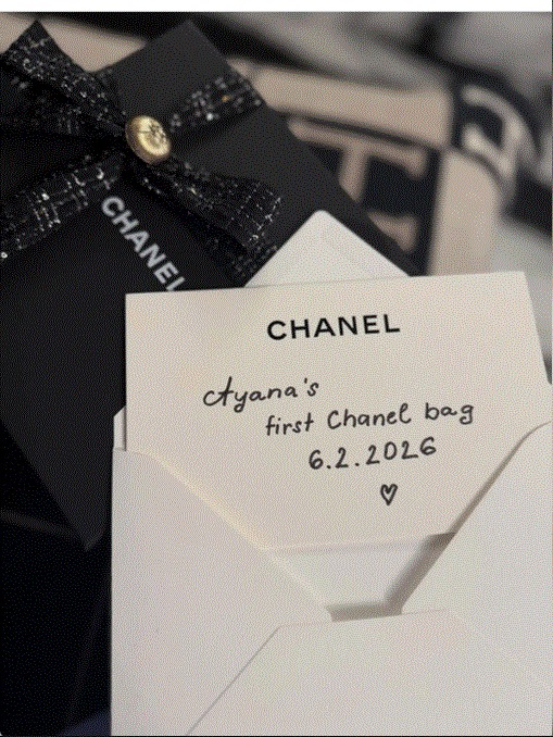 Na jemně růžové mini taštičce nechyběl ani krátký, ale výmluvný vzkaz: „Ayanina první kabelka Chanel.“ Žádná náhoda, žádný obyčejný suvenýr. Symbol. Styl. Prohlášení. Plačková tím jasně dává najevo, že luxus je u nich doma samozřejmostí od prvního dne.
