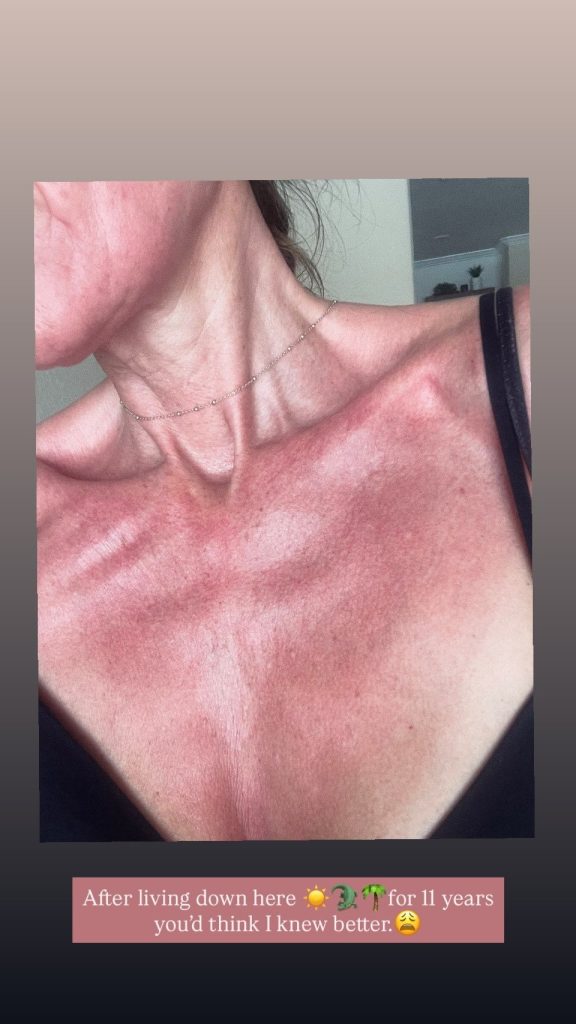 „Po jedenácti letech života tady dole by si člověk myslel, že vím, co mám dělat,“ svěřila se otevřeně. Sama přiznala, že na opalovací krém zapomněla právě ve chvíli, kdy ho potřebovala nejvíc. A výsledek? „Teď za to platím,“ napsala k fotografiím, na nichž je vidět výrazně zarudlá, bolestivě spálená kůže.