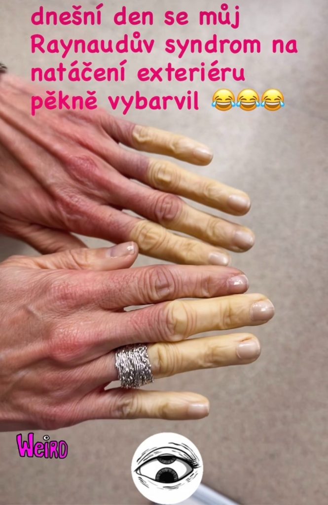 Stačí změna teploty. Nezáleží, jestli je venku teplo nebo je jen chladnější místnost. Prsty se jí náhle odkrví, zblednou a ztratí cit. Následně přichází bolest. Bílá místa necítí vůbec, někdy si kvůli tomu nedokáže ani zapnout knoflíky. Pro muzikálovou hvězdu, která potřebuje plně fungovat na jevišti i před kamerou, je to velké omezení.