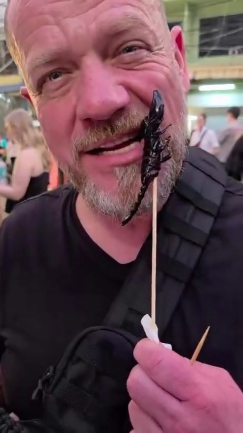 Blažek se k tomu ale nijak nevyjadřuje. Na sociálních sítích místo toho sdílí fotografie a krátká videa ze své cesty. Ukazuje například návštěvy místních chrámů nebo ochutnávky netradičních jídel. Mezi snímky se objevila i momentka, na které herec zkouší štíra na špejli.