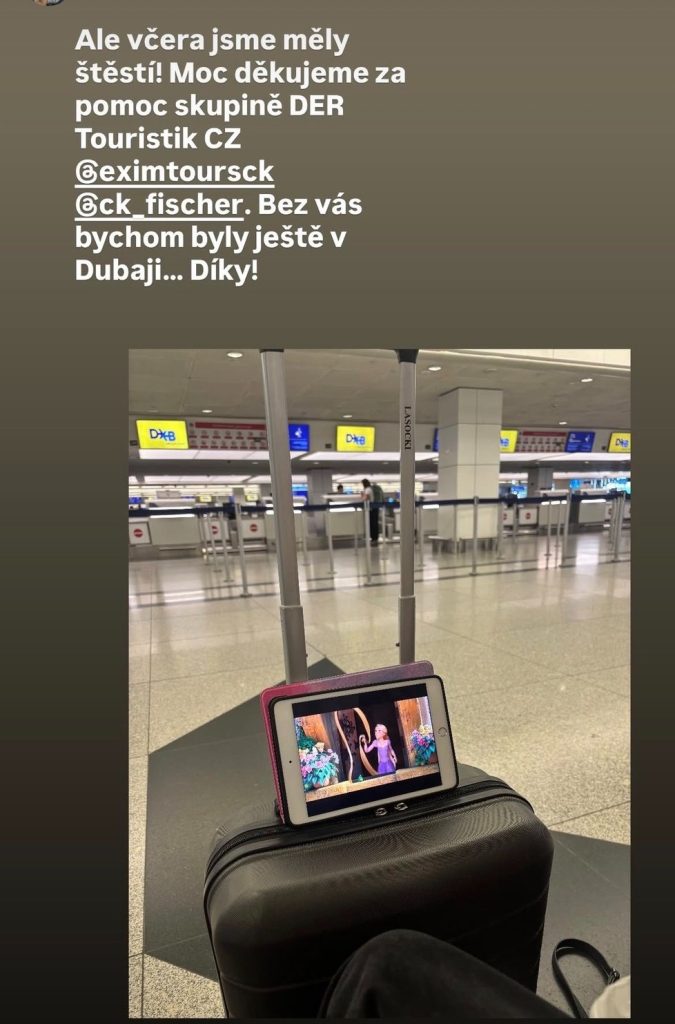 Dcera Lola si podle všeho dokázala dovolenou užívat i v těchto podmínkách. Pro dospělé však přibývala nejistota, kdy se podaří vrátit domů. Původní ubytování skončilo v úterý, a tak cestovní kancelář zajistila přesun do hotelu poblíž dubajského letiště.