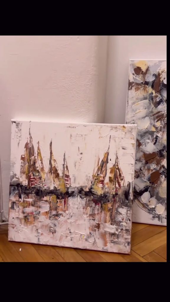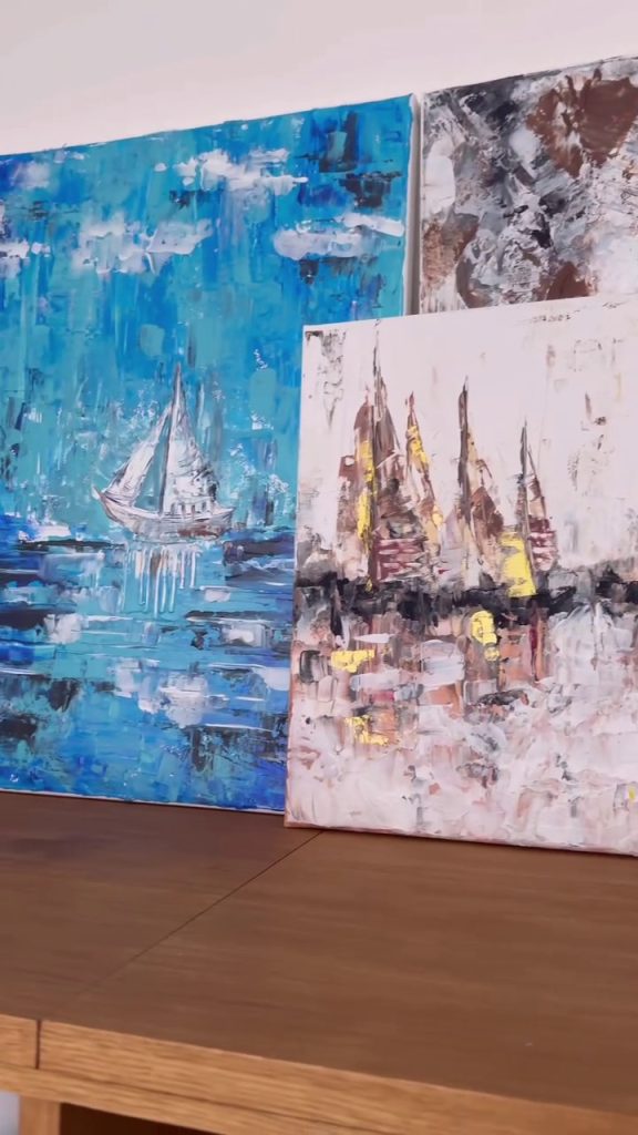 Na jejích plátnech se objevují různé motivy. Některé obrazy zachycují propracované postavy, jiné působí romanticky a zobrazují scenérie s loděmi nebo krajinu. Pro svou tvorbu používá techniku akrylu nanášeného špachtlí, která obrazům dodává výraznou strukturu a energii. Zdá se navíc, že nová vášeň ji naplno pohltila. V jejím domově se začala hromadit plátna různých velikostí a motivů. A jak sama naznačila, nezůstane jen u domácí galerie.