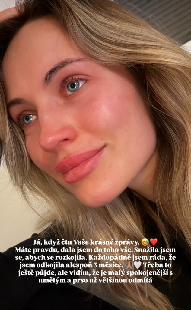 „Snažila jsem se, abych se rozkojila,“ přiznala bez obalu. Její slova ale doprovází i smutek. Vnímá, že malý Bryan je klidnější a spokojenější s umělým mlékem, zatímco přirozené krmení postupně odmítá. A právě to je pro ni těžké přijmout.