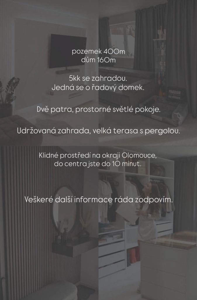 Nemovitost nabízí 160 metrů čtverečních obytné plochy na pozemku o velikosti 400 metrů čtverečních. Jde o dispozičně řešený dům 5KK se zahradou, rozdělený do dvou pater. Nechybí světlé pokoje, upravený venkovní prostor ani terasa s pergolou, která působí jako ideální místo pro odpočinek.