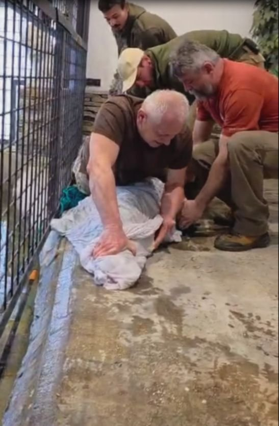 Přesun tak velkého predátora nebyl jednoduchý. Téměř čtyřmetrový kolos vážící kolem 150 kilogramů vyžadoval koordinovanou akci několika ošetřovatelů. Použili síť, zakryli jí oči a zajistili tlamu, aby předešli riziku útoku. Následně ji opatrně zvedli a převezli na nové místo.