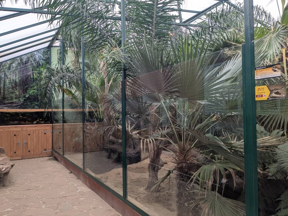 V zoo si nyní zvyká na nové prostředí. Má k dispozici pavilon Tropický svět s jezírkem, úkryty i vyhřívanými plochami. Z bezpečnostních důvodů je oddělena od jiné samice. Přes den se drží spíše v ústraní, zatímco večer, kdy je klid, se vydává ven a tráví čas na souši.