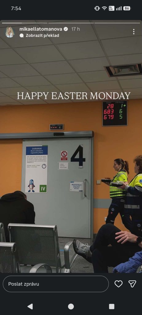 Sváteční pohoda, klid a rodinné chvíle? Pro Michaelu Tomanovou letos nic z toho neplatilo. Velikonoční pondělí jí přineslo úplně jiný zážitek, než jaký si představovala – místo oslav skončila na chirurgii. Miss Universe Česko 2025, která kromě modelingu působí i jako vědkyně a věnuje se osvětě v oblasti HIV, sdílela moment, který působí až nečekaně kontrastně. Zatímco její okolí si užívalo tradice, ona seděla v nemocniční čekárně a s lehkou ironií popřála svým sledujícím „veselé“ svátky.