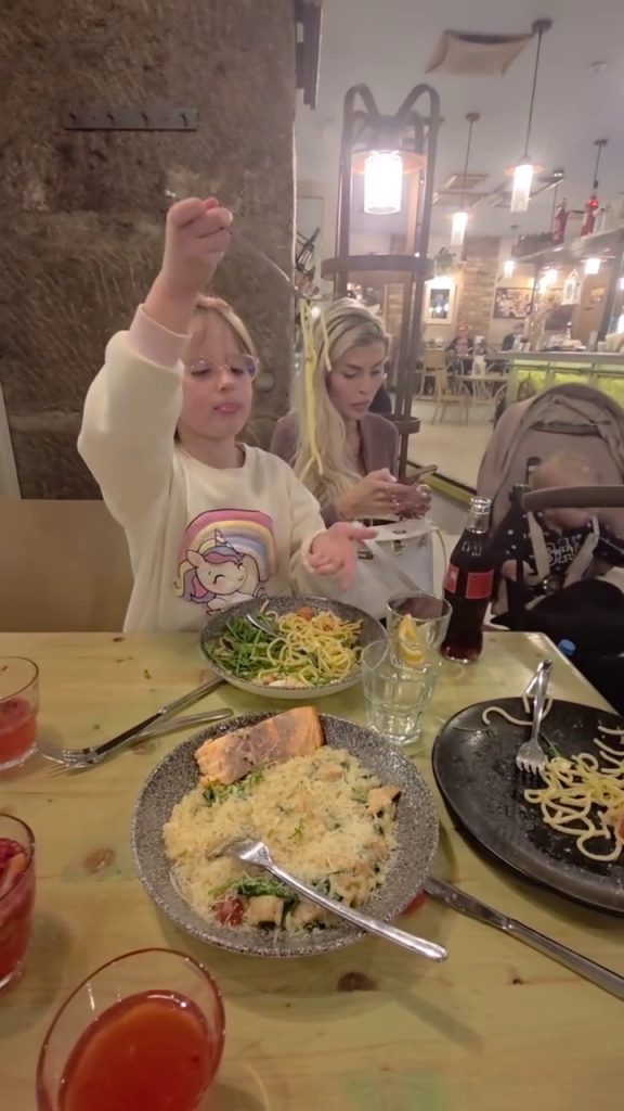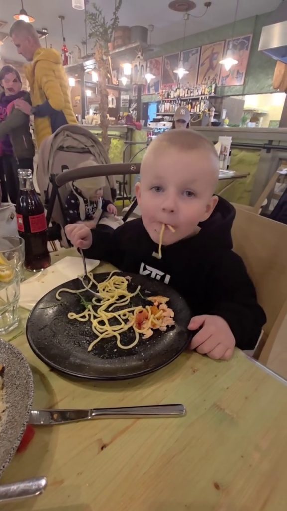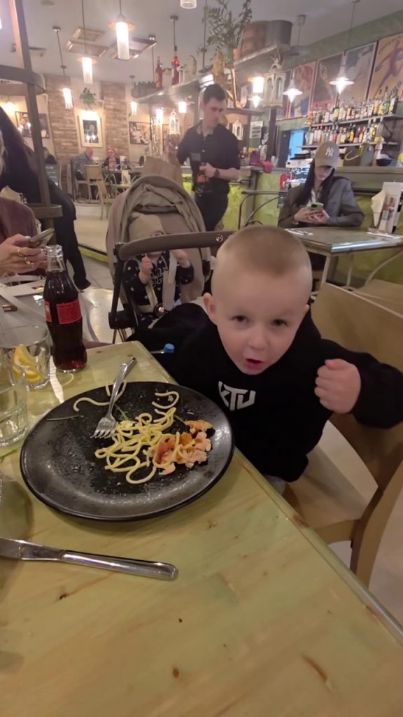 „Ať se děje cokoli, děti musí mít normální život,“ tak by se dala shrnout atmosféra večera. Lili (6) zápasila se špagetami, které jí připadaly těžší než leckterý zápas v MMA, zatímco Rocky (4) předváděl bojovné pohyby a choval se jako opravdový zápasník. A v pozadí, vedle nejmladšího Arnieho (1), který seděl v kočárku, byla Lela. I když měla výraz, který by naznačoval, že je spíše zaujatá svým telefonem, celá scéna působila přirozeně a harmonicky.