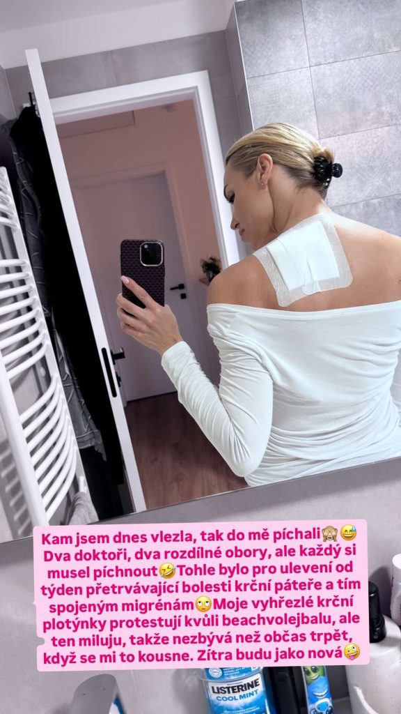 Mašlíková se rozhodla jít s pravdou ven. Na sociálních sítích sdílela moment, kdy bylo jasné, že nejde jen o drobný problém. Na fotografii, kterou pořídila před zrcadlem, dominuje výrazná náplast na krku. Detail, který mluví za vše a naznačuje, že zákroky nebyly zrovna příjemné. A sama to potvrdila svým typickým stylem. „Kam jsem dnes vlezla, tak do mě píchali. Dva doktoři, dva rozdílné obory, ale každý si musel píchnout,“ popsala s lehkou nadsázkou. Humor ale tentokrát jen zakrývá realitu, která je o poznání drsnější.