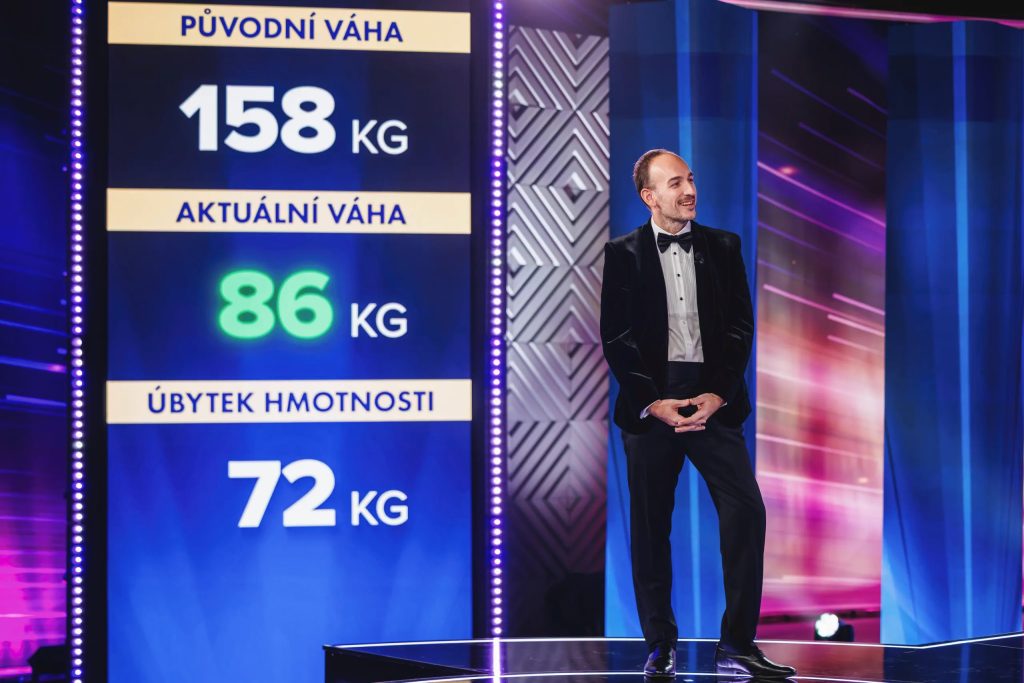 A pak přišel finální moment. Na pódiu se objevil úplně jiný člověk. Marek shodil neuvěřitelných 72 kilo a zastavil se na váze 86 kilogramů. Jeho proměna byla nepřehlédnutelná — nejen fyzicky, ale i v tom, jak působil.