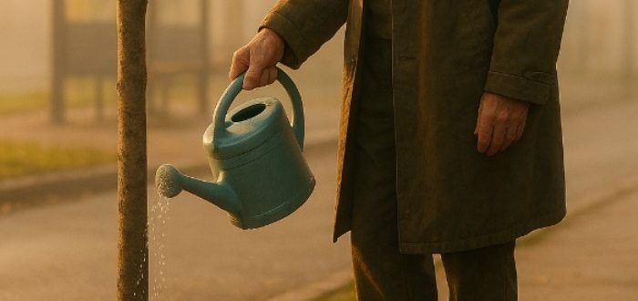 Tato autobusová zastávka byla vždycky přeplněná. Školáci spěchající do třídy. Ženy s taškami. Unavení muži po směně. A – vždycky ta samá osoba. Starší muž s šedivými vlasy,