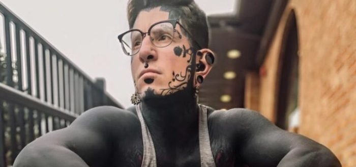 „97 % potetováno 🖤💉“ Sám sebe nazývá nejvíce potetovaným mužem na světě – téměř celé jeho tělo je pokryto tetováním. Ale jedna stará fotografie z doby před proměnou